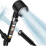 PWERAN Filtered Shower Head with Handheld, High Pressure 3 Spray Mode Showerhead with 18 Stage Water Softener Filters for Hard Water – Remove Chlorine-BLACK