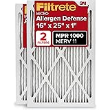 Filtrete 16x25x1 AC Furnace Air Filter, MERV 11, MPR 1000, Micro Allergen Defense, 3-Month Pleated 1-Inch Electrostatic Air Cleaning Filter, 2 Pack (Actual Size 15.719 x 24.72 x 0.84 in)